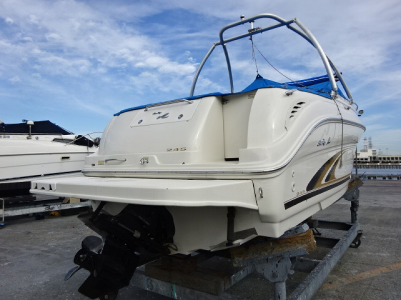 中古艇情報 シーレイ 245 陸置き艇 船底塗装なども無く全体が美艇、エンジン、ドライブを新品に載せ替え